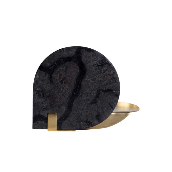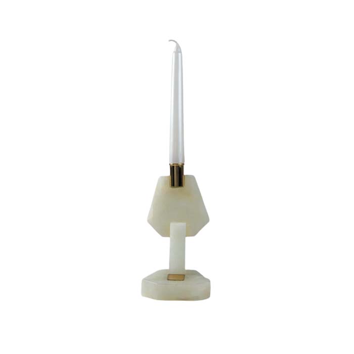 A unique lantern made from various graceful marbles along with the temperate brushed brass. In this unconventional design, the marble. presented as an elevated canva, was chiseled to a lunar shape and braced with the brushed brass holder to create a conceptual sculptural statement.